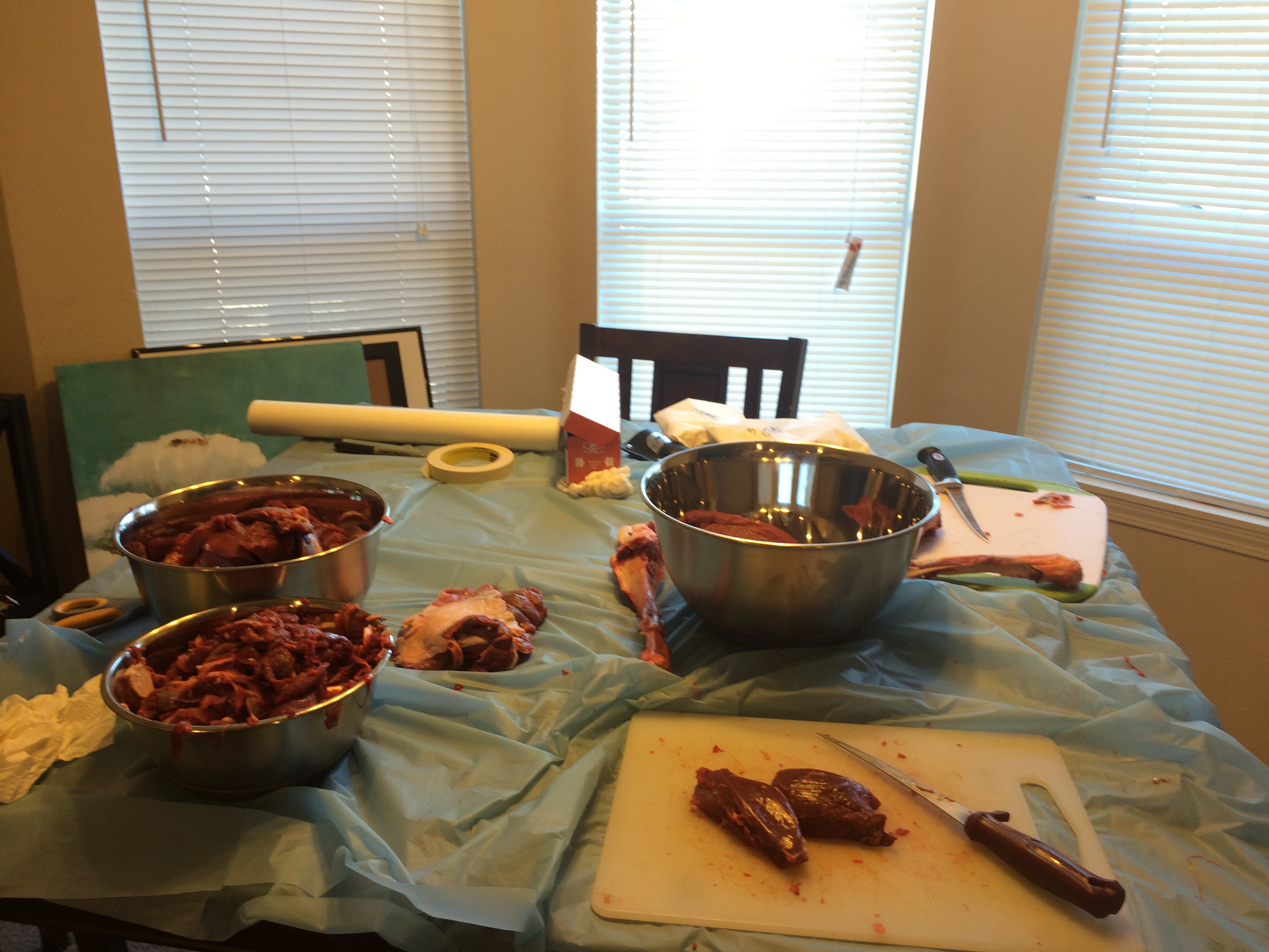 When I got back from my hunting trip, I had four deer quarters to butcher.